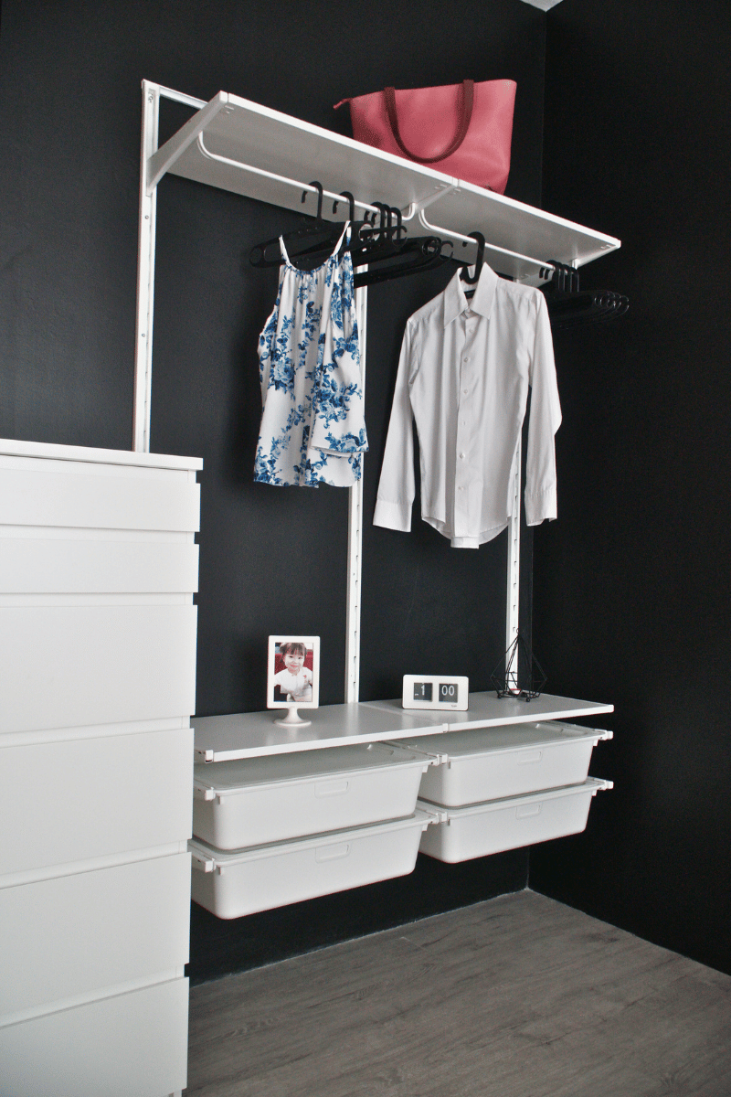 Open Wardrobe with black painted wall gives the industrial feel